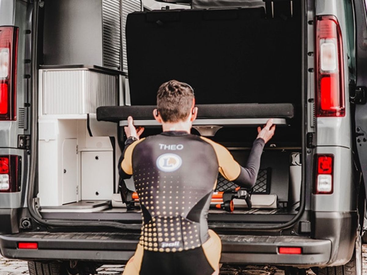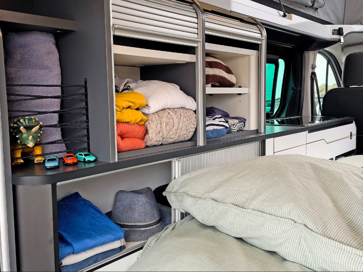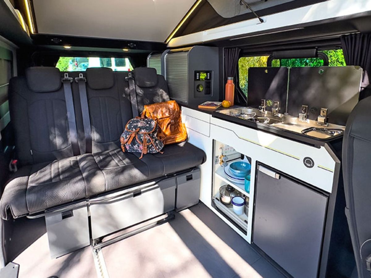 Après une journée bien remplie, rien de mieux qu’une nuit reposante à bord du TREK5+ pour repartir de plus belle le lendemain. La banquette arrière convertible avec le système “Smart Bed” offre un large couchage de 125 cm aux épaules et 192 cm de long. Le grand toit relevable propose un couchage de 140 x 195 cm avec un sommier à plots très confortable.