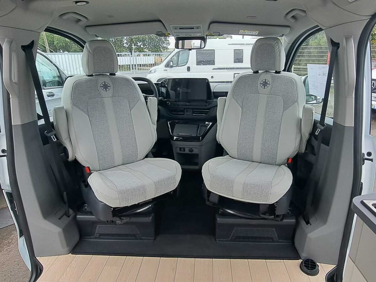 Equipements de série cellule : Banquette électrique type BZ; Chauffage Webasto 2000W; Cuisine avec évier inox et plaque de cuisson 2 feux; Douche intérieure avec bac receveur; Interface USB; Réfrigérateur à compression 51L; Réservoirs eaux propres 50L / usées 50L; Rideaux isotherme cabine; Toilettes fixe; Chauffe eau pour douche et évier; Portes latérales coulissantes